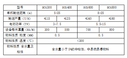 注:1.输送产量是以散体比重为1.6吨/米3,温度小于300℃的水泥熟料测定。