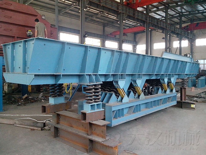 (1)振动输送机的底架与槽体必须安装平直,建议其平直度在10米长度不大于5-8毫米,底架与槽体过大的挠曲会引起较大的安装应力,进而会引起这些机件的早期损坏。